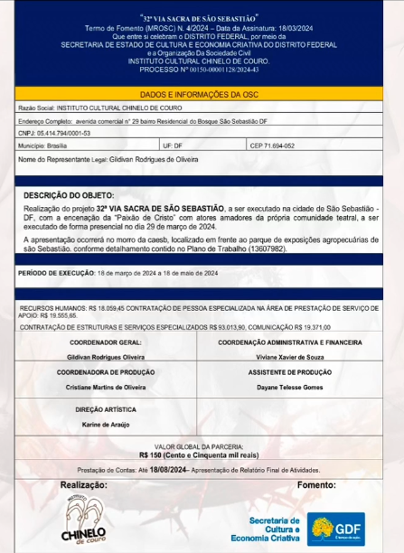 Termo de Fomento 03/2024 Espetáculo da 32ª edição da via sacra de São Sebastião